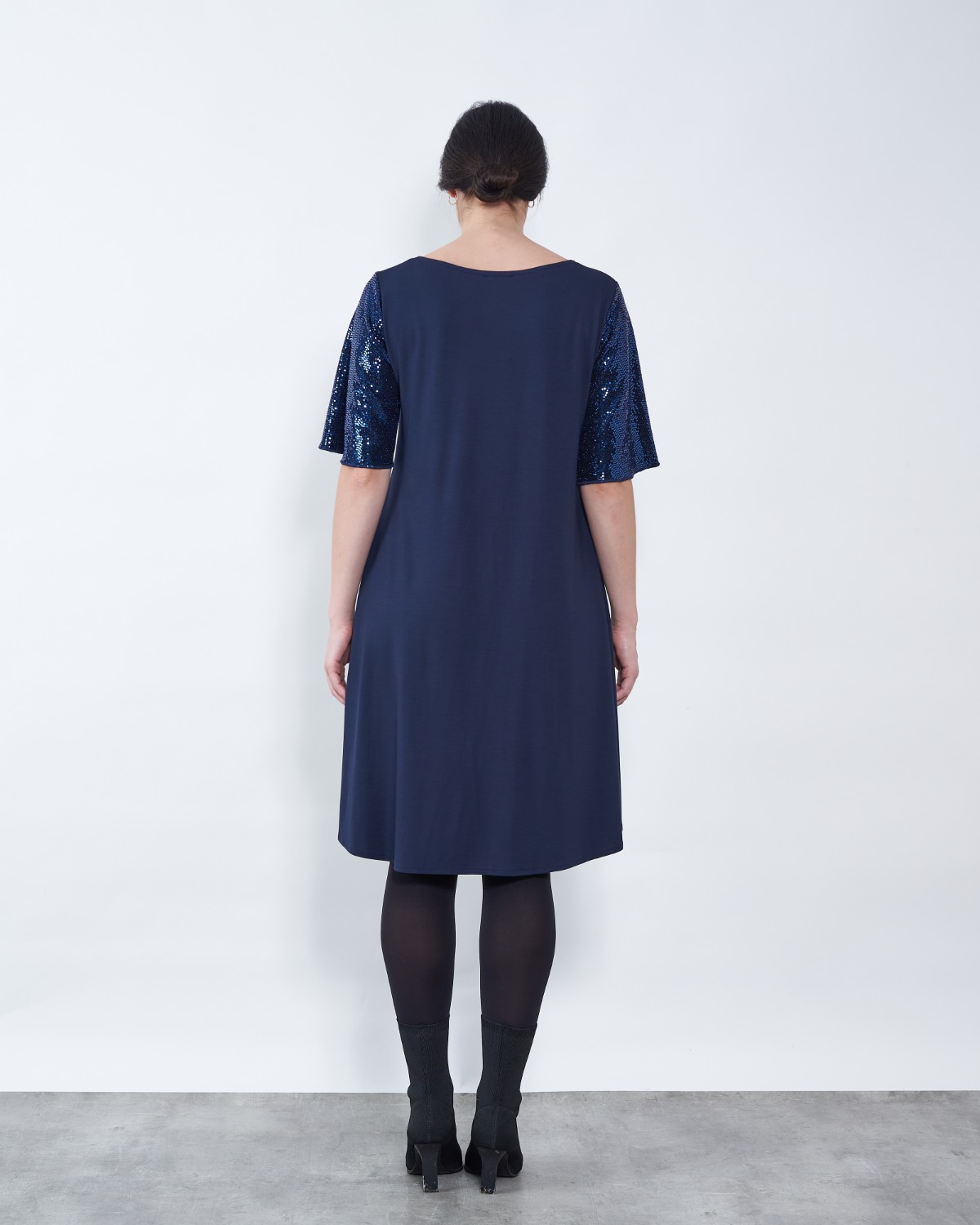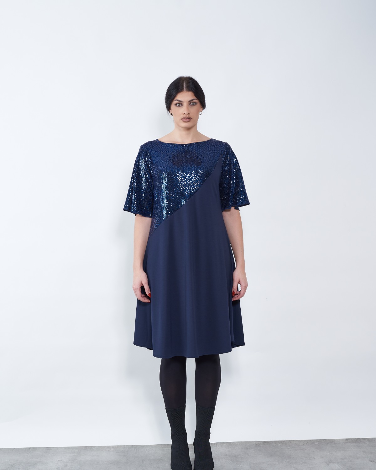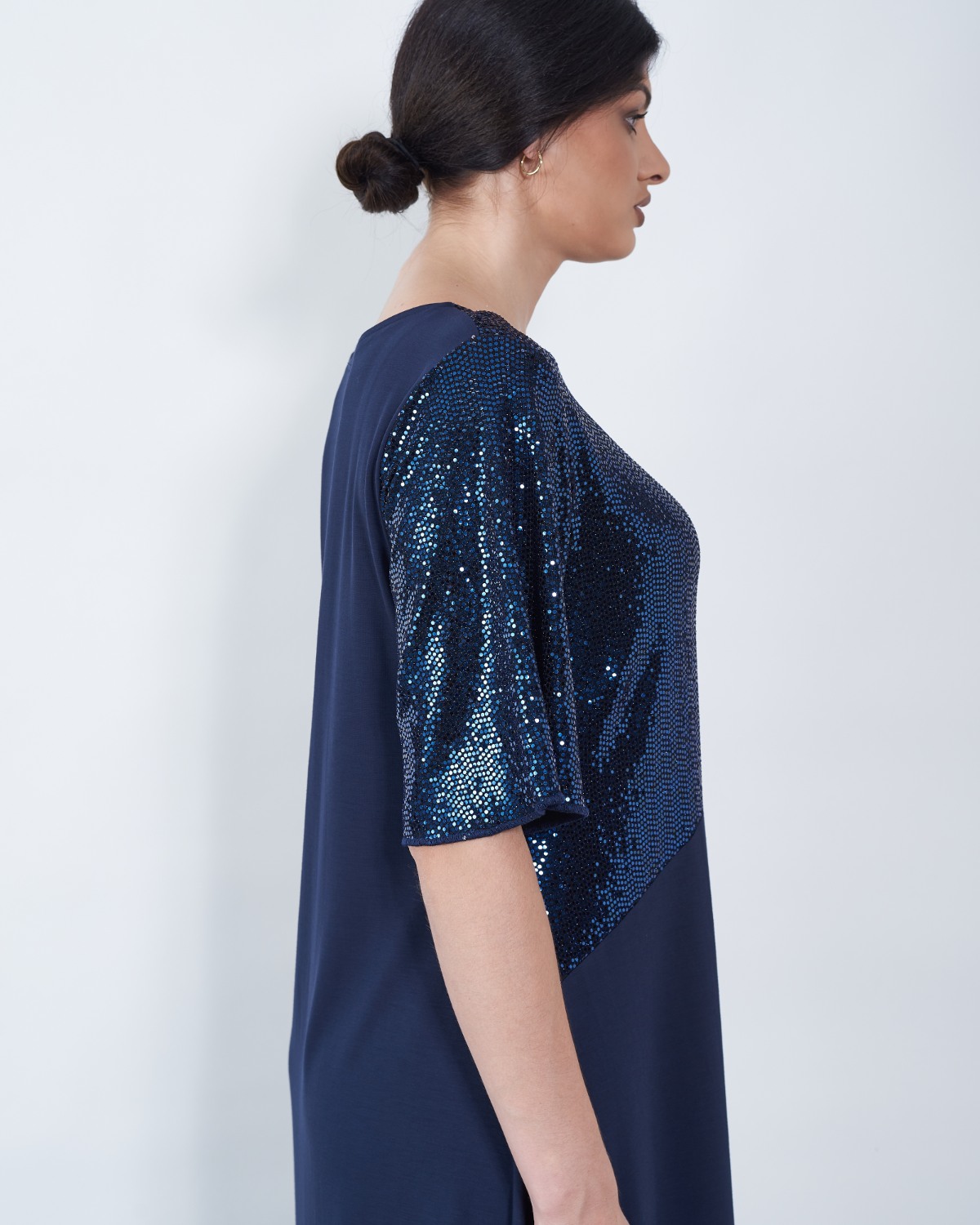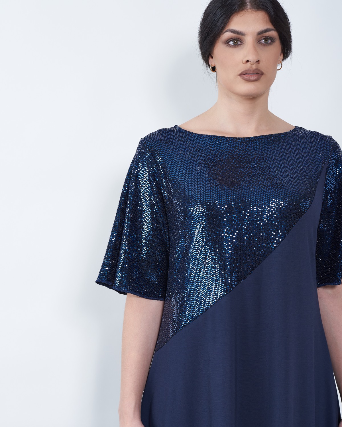 U gornjem dijelu ističe se sjajni umetak, te lepršavi rukavi.