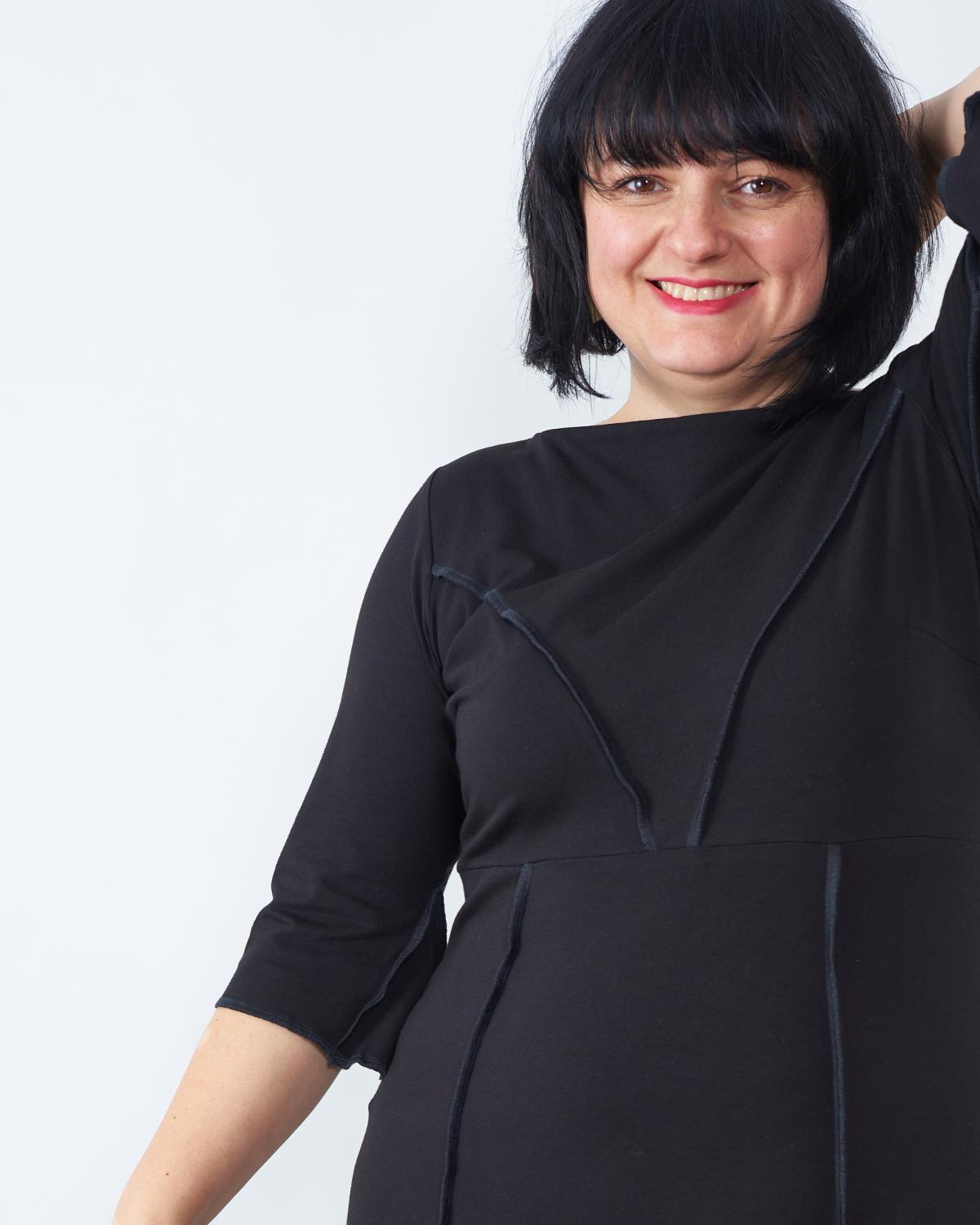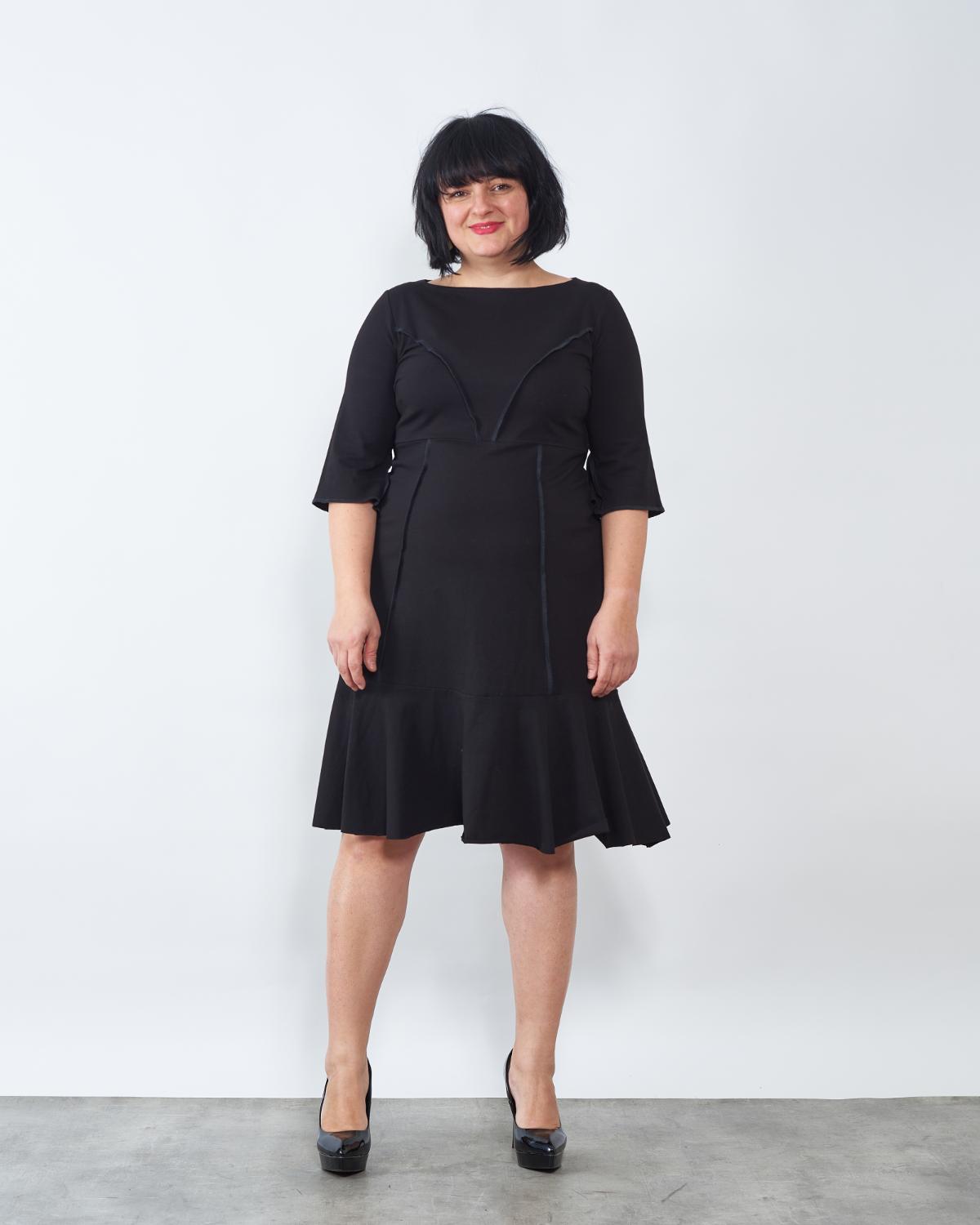 Model rezan u struku u donjem dijelu krasi široki volan.