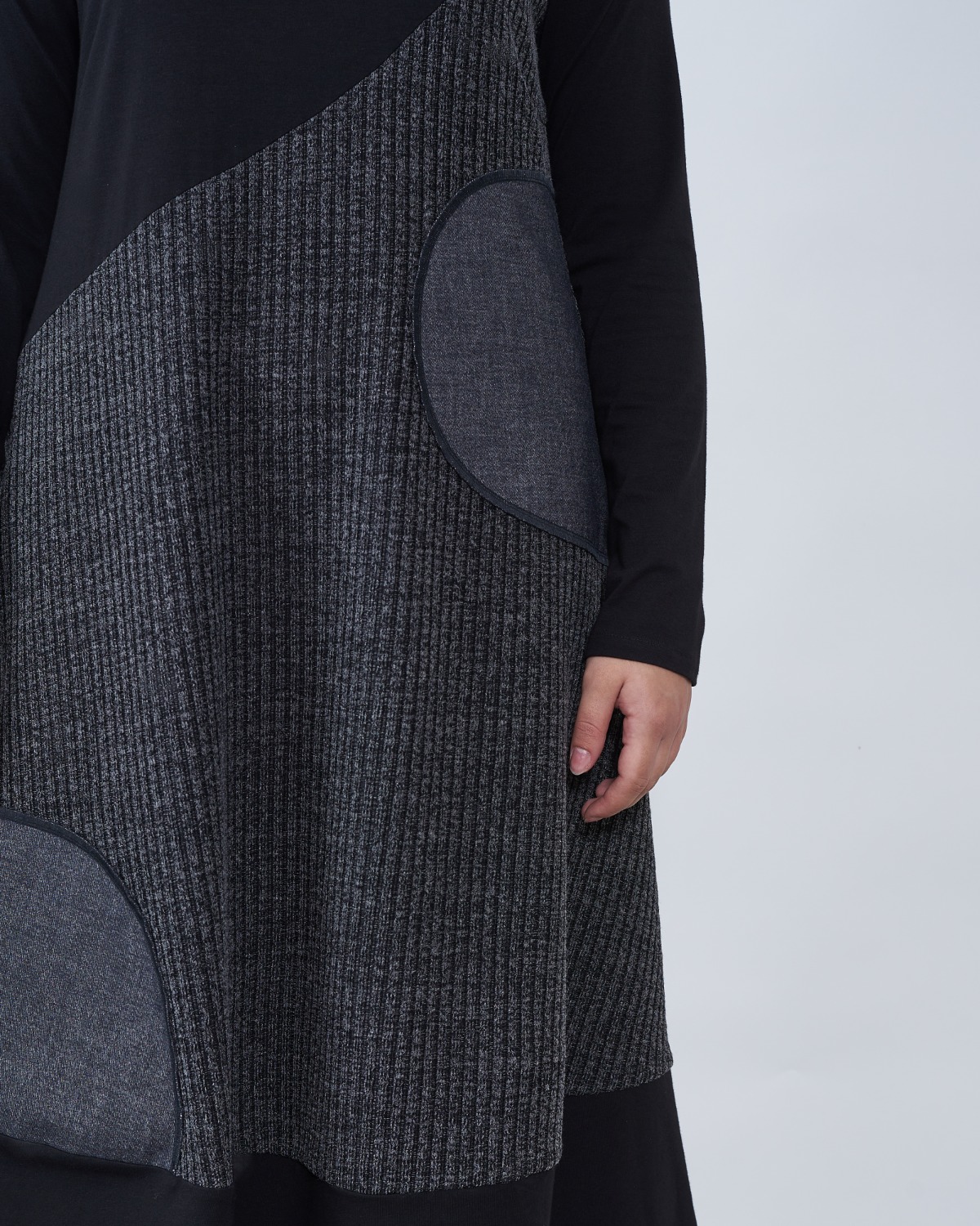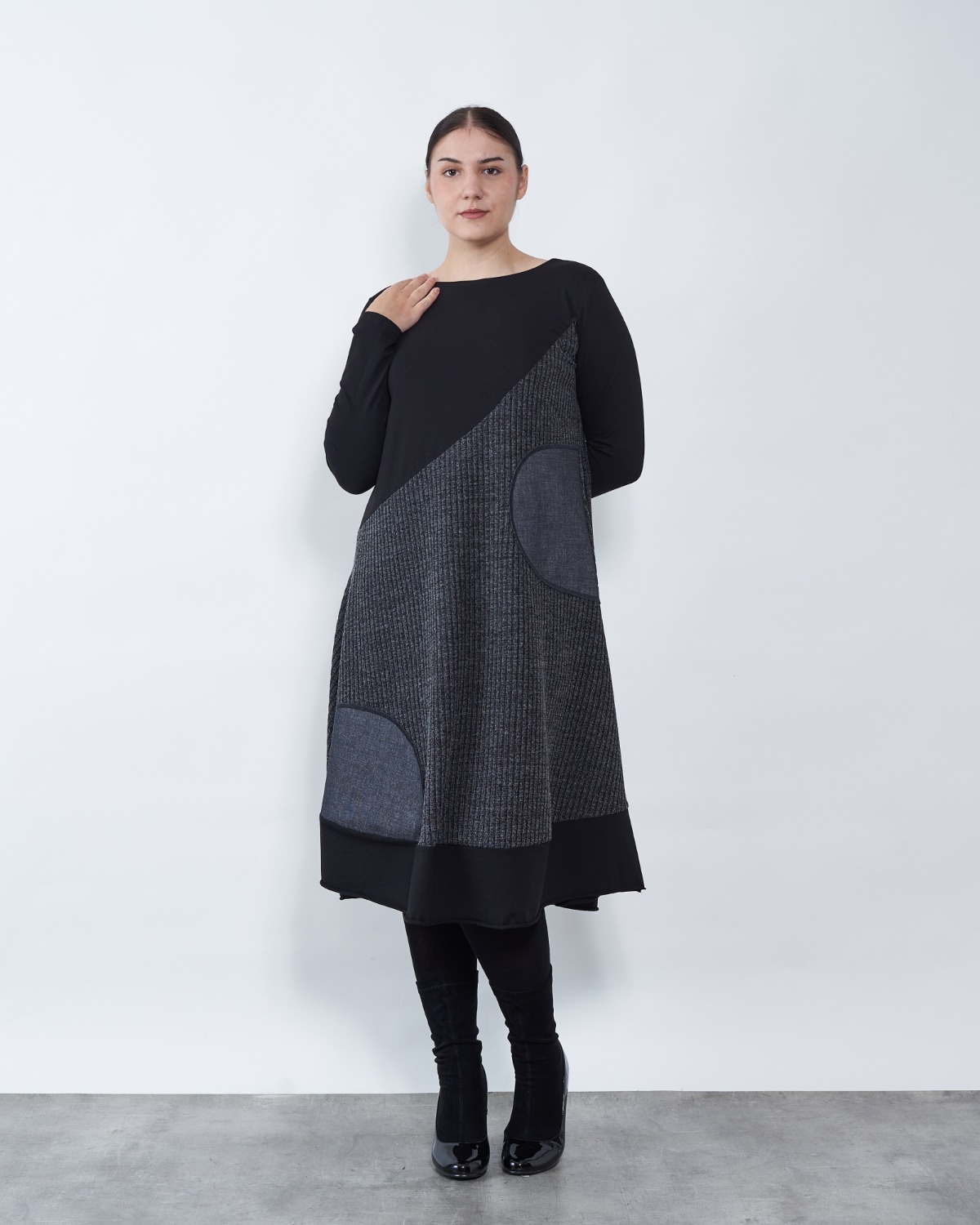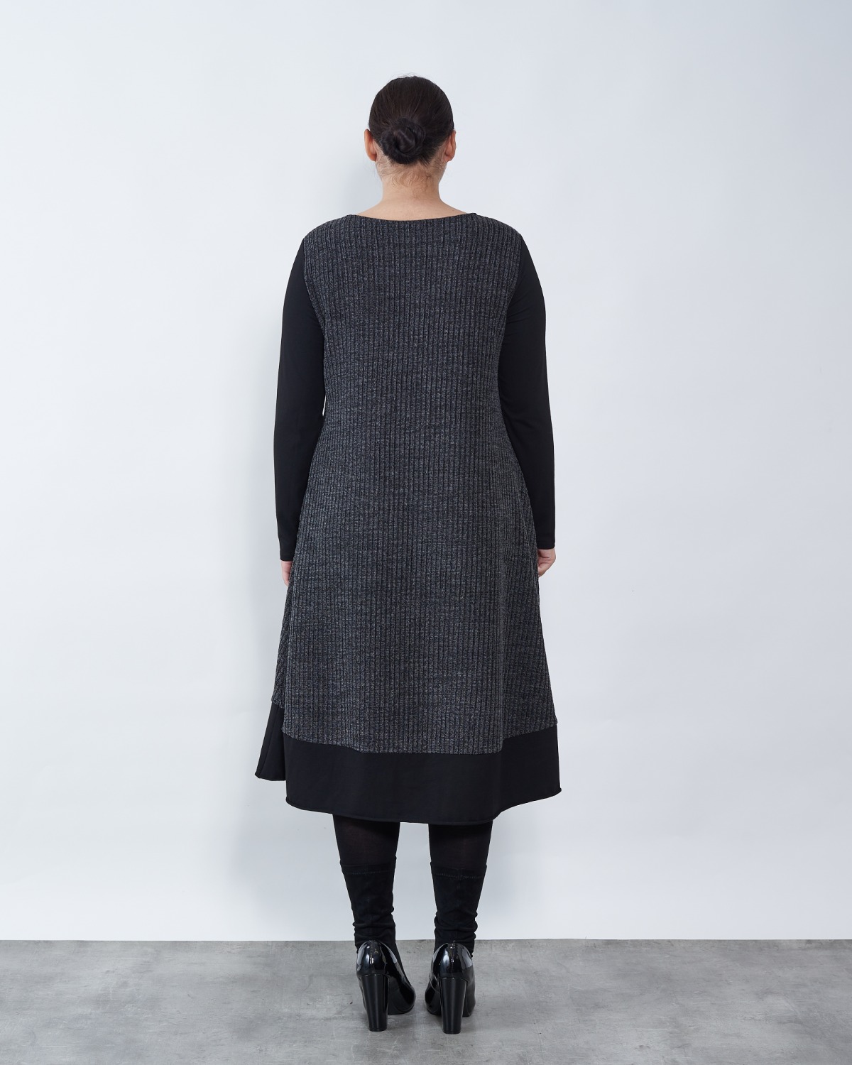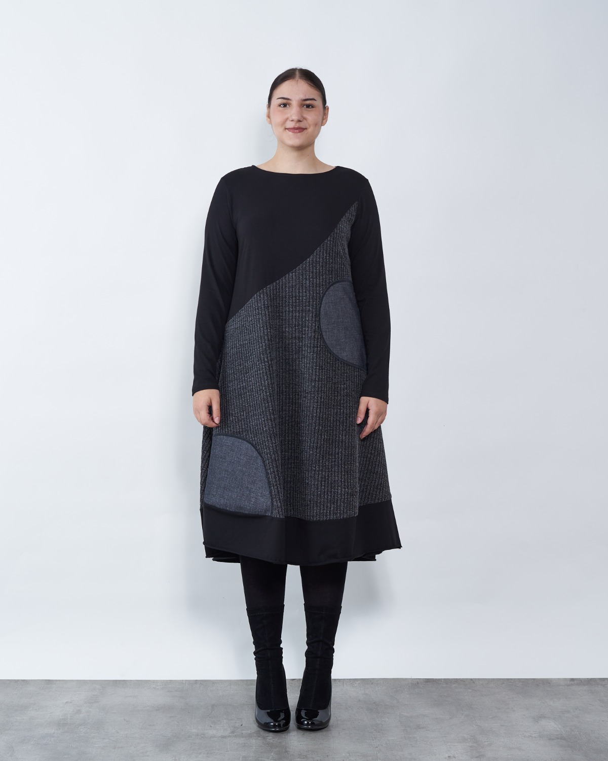 Haljina A kroja u kombinaciji sive i crne boje.