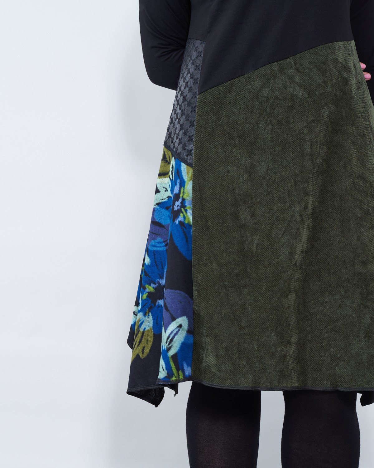 U prednjem dijelu ističe se umetak od samta, te cvjetni i dodatak od umjetne kože.