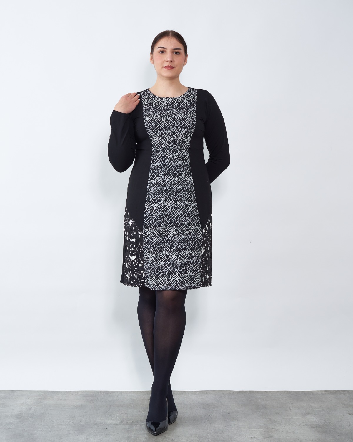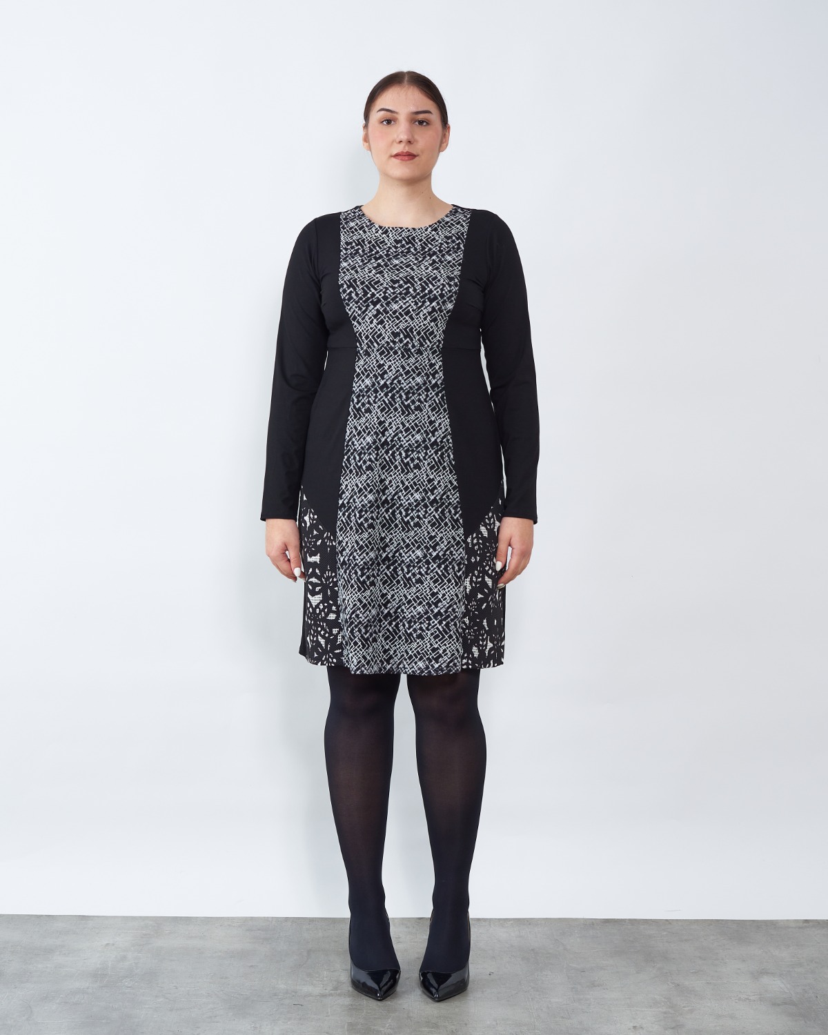 Model rezan ispod prsiju u prednjem dijelu krase crno-bijeli umetci.