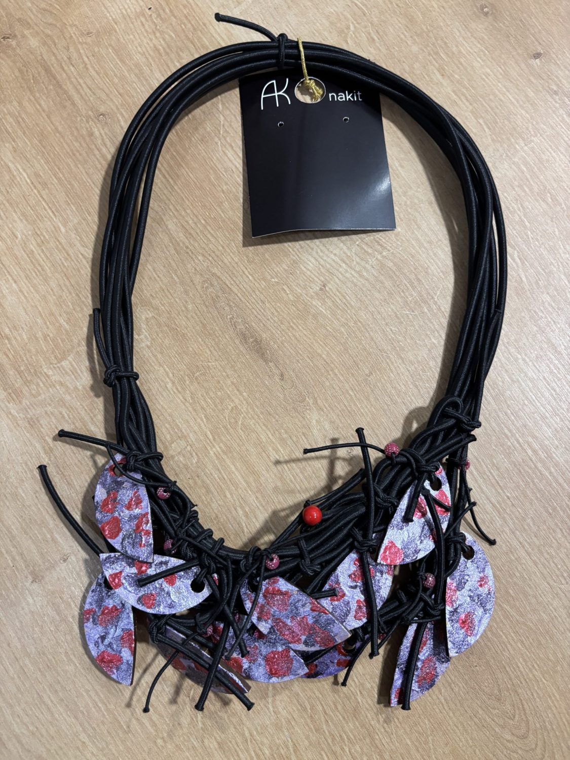 Ogrlica sa drvenim dodacima koji su ručno oslikani idealan je izbor za podizanje svake modne kombinacije.