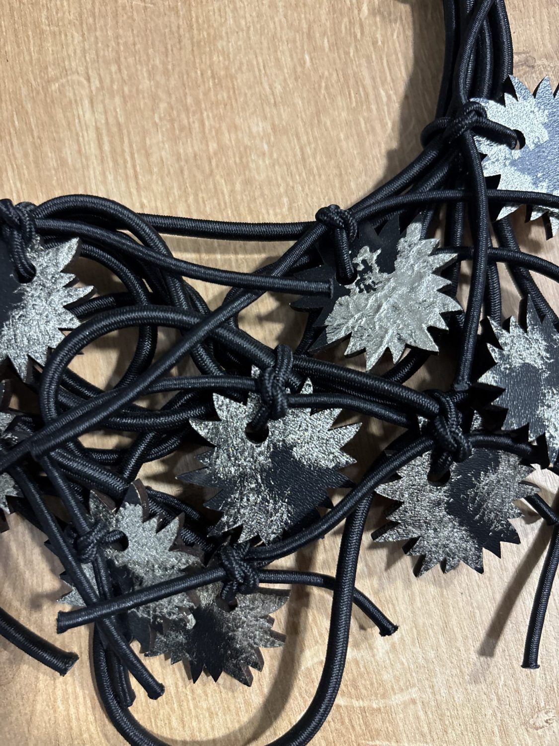 Ogrlica sa drvenim dodacima koji su ručno oslikani idealan je izbor za podizanje svake modne kombinacije.