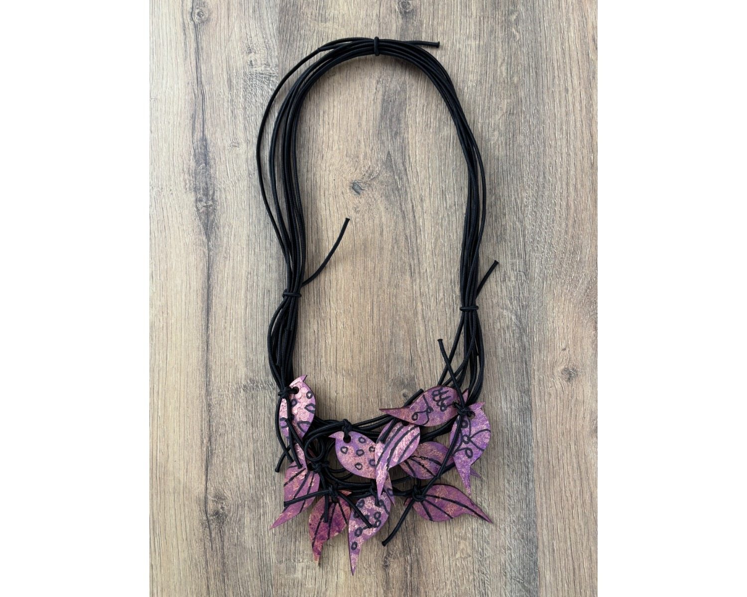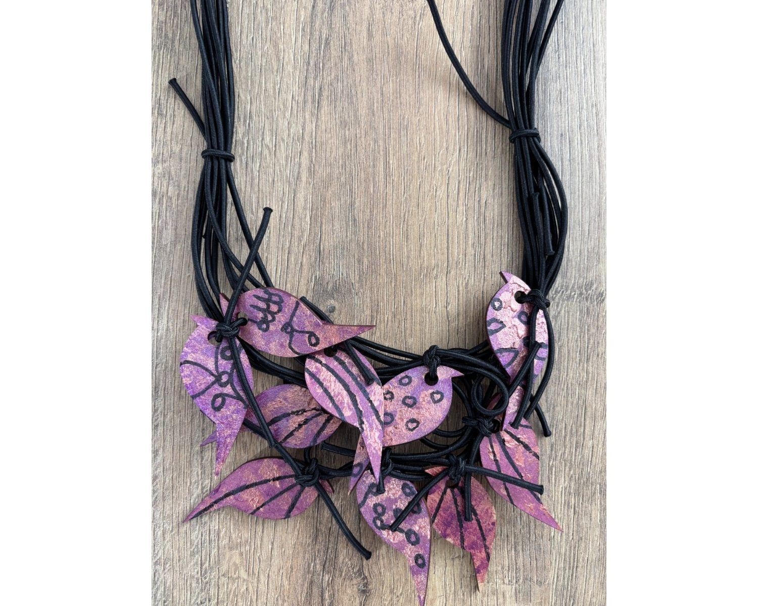 Ogrlica sa drvenim dodacima koji su ručno oslikani idealan je izbor za podizanje svake modne kombinacije.