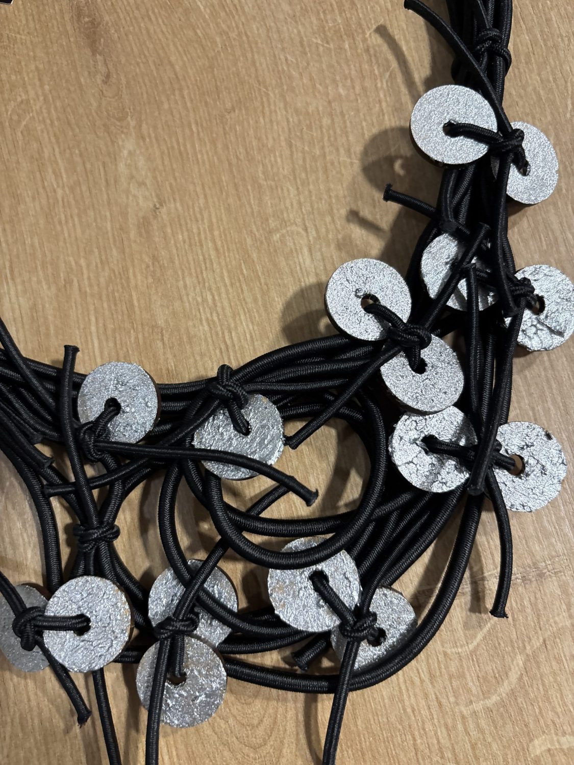 Ogrlica sa drvenim dodacima koji su ručno oslikani idealan je izbor za podizanje svake modne kombinacije.