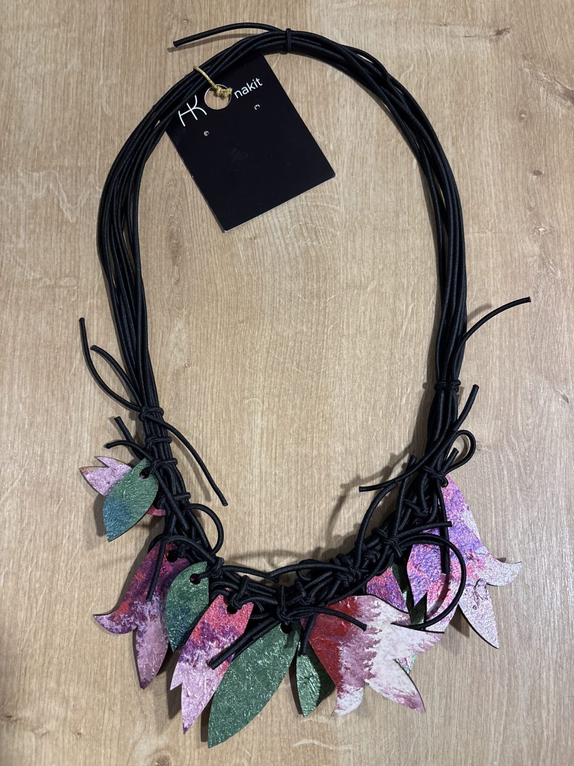 Ogrlica sa drvenim dodacima koji su ručno oslikani idealan je izbor za podizanje svake modne kombinacije.