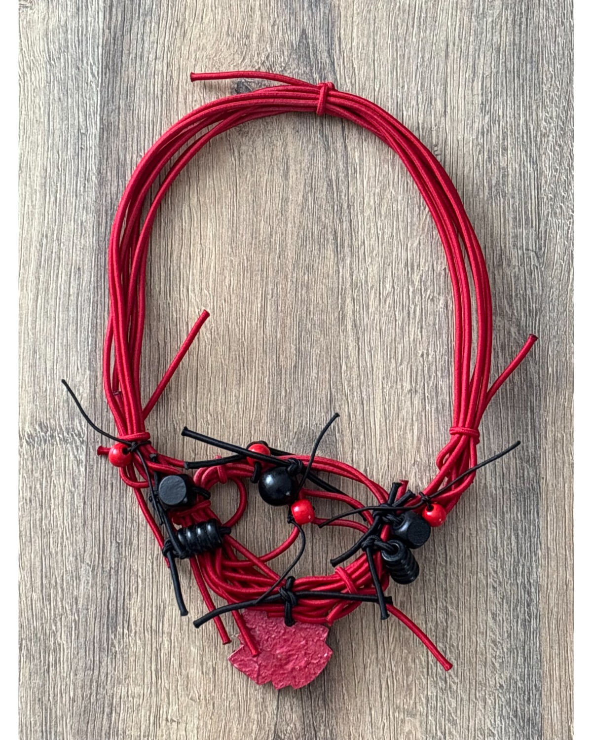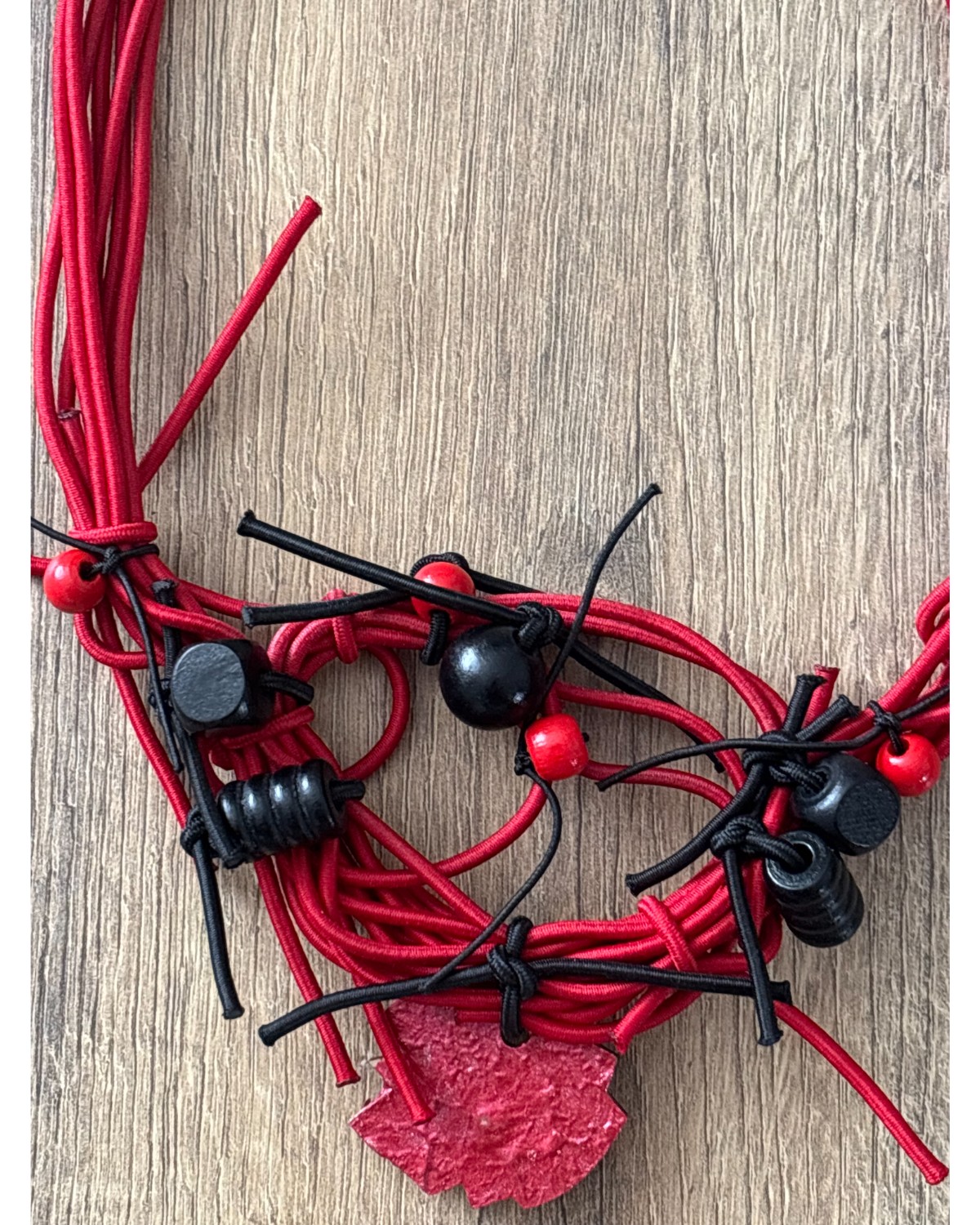 Ogrlica sa drvenim dodacima koji su ručno oslikani idealan je izbor za podizanje svake modne kombinacije.