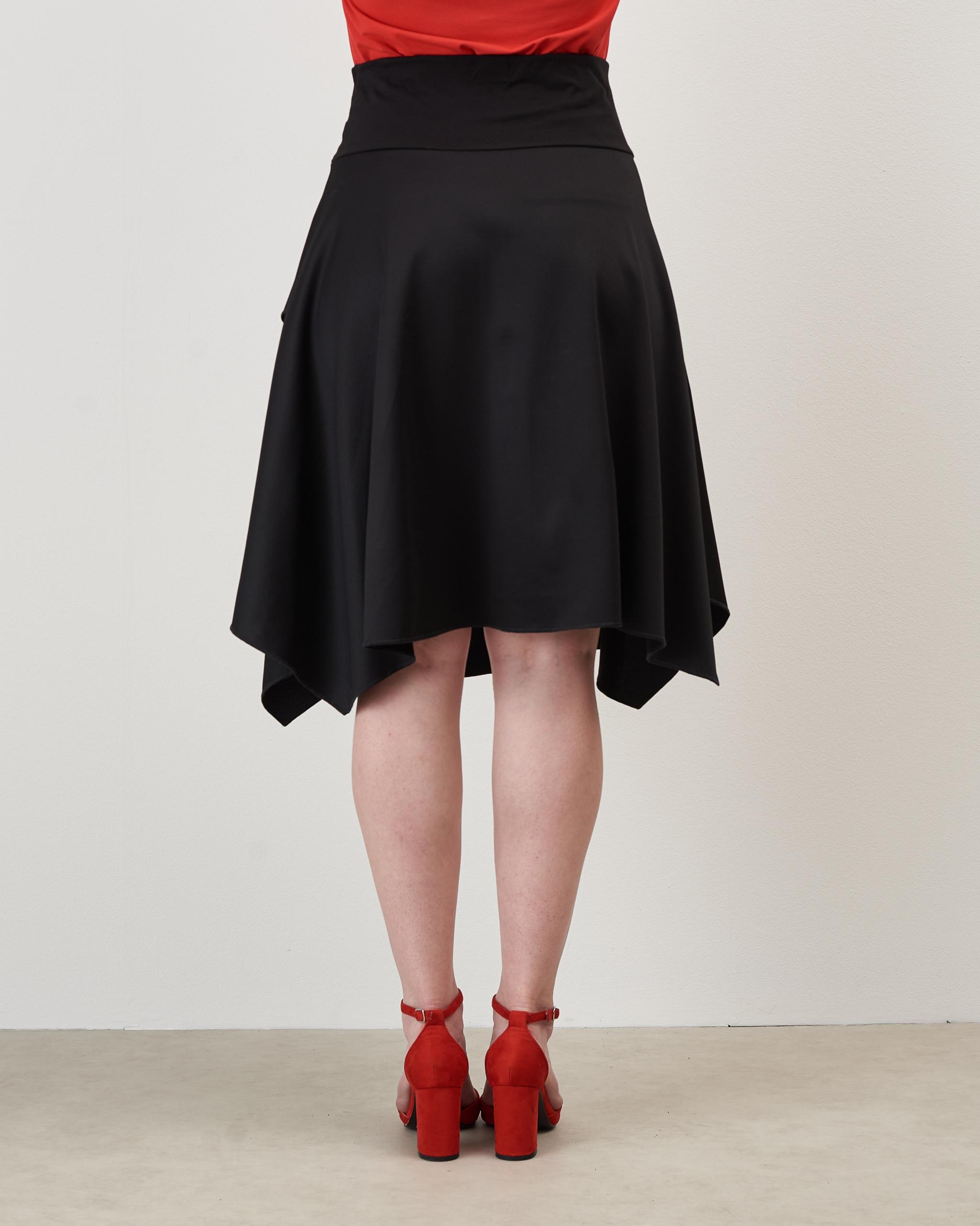Model je "A" kroja sa asimetrijom u donjem dijelu.