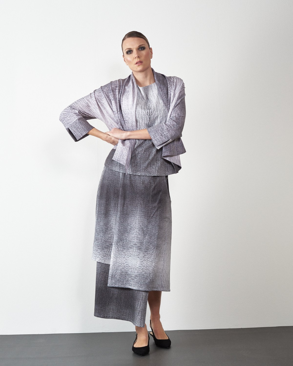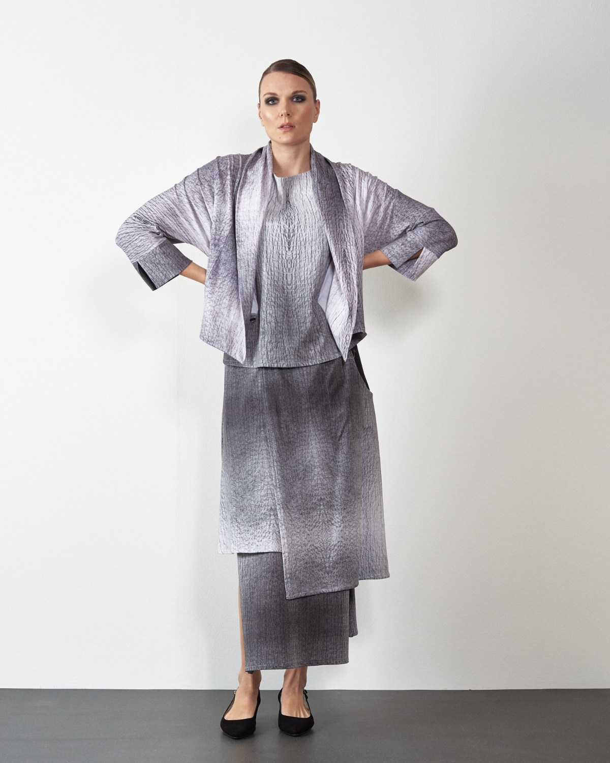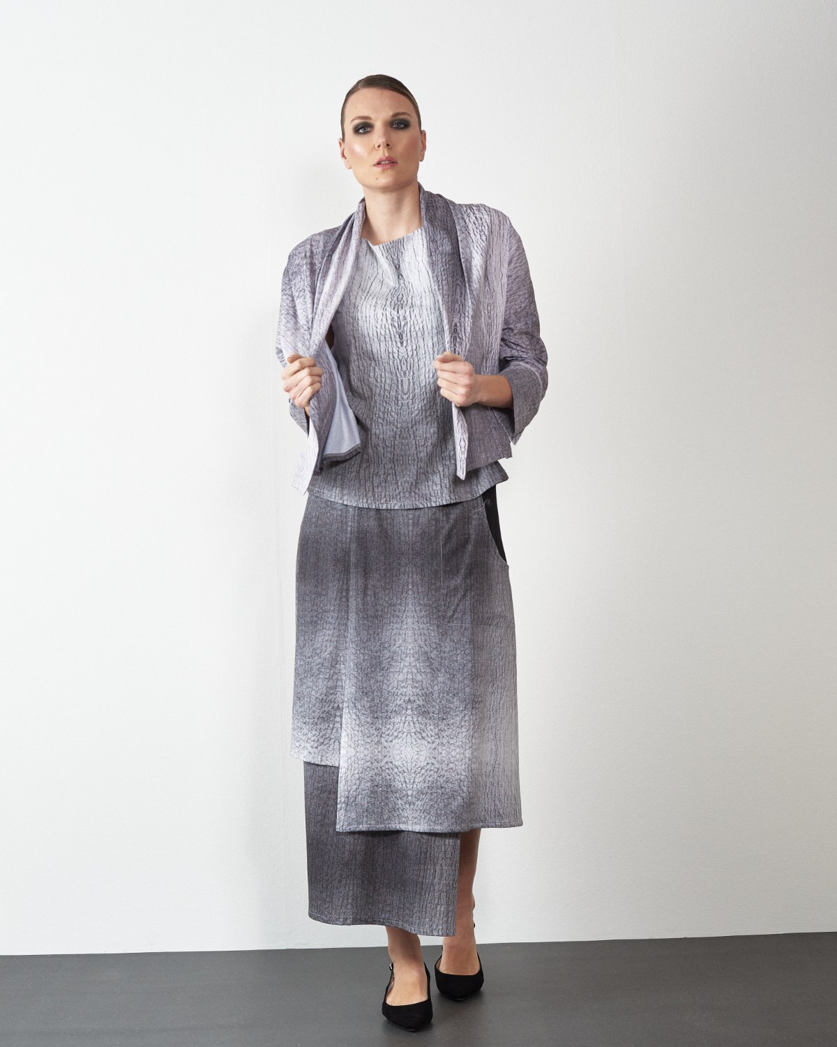 U donjem dijelu krasi je asimetrija i rasporci, te džep na desnoj strani.