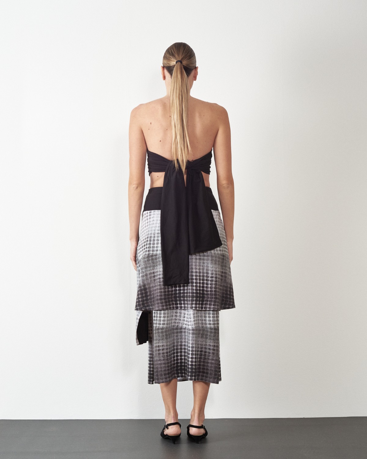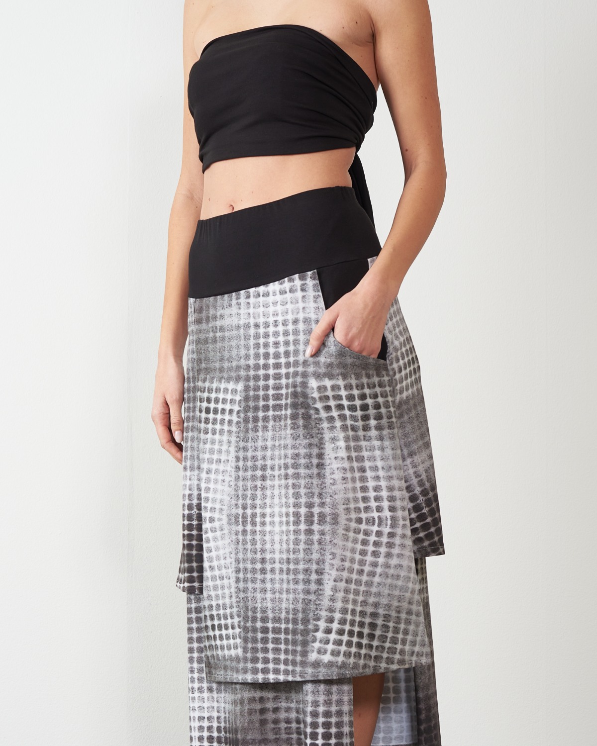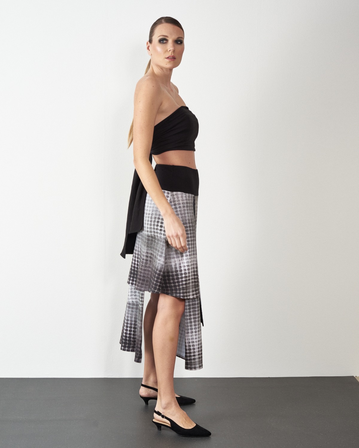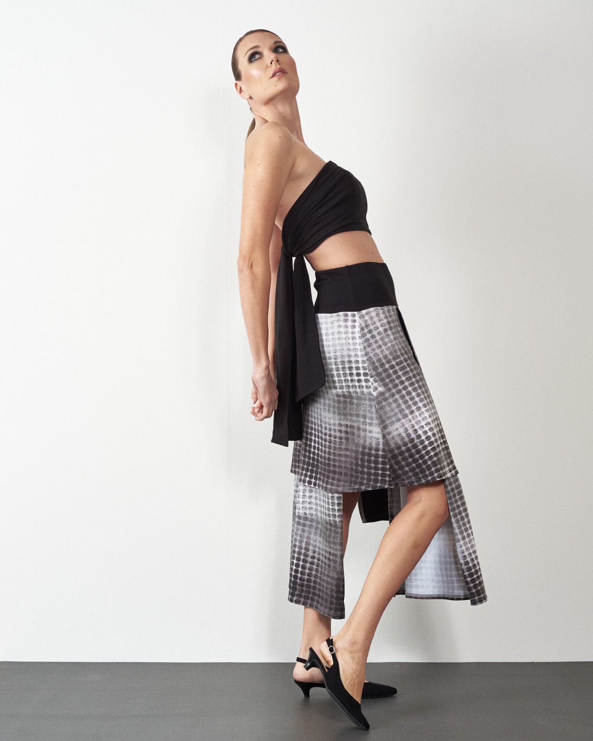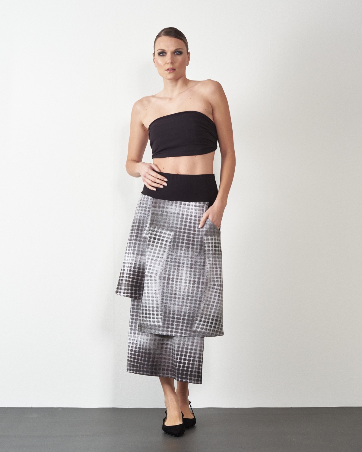 U donjem dijelu krasi je asimetrija i rasporci, te džep na desnoj strani.