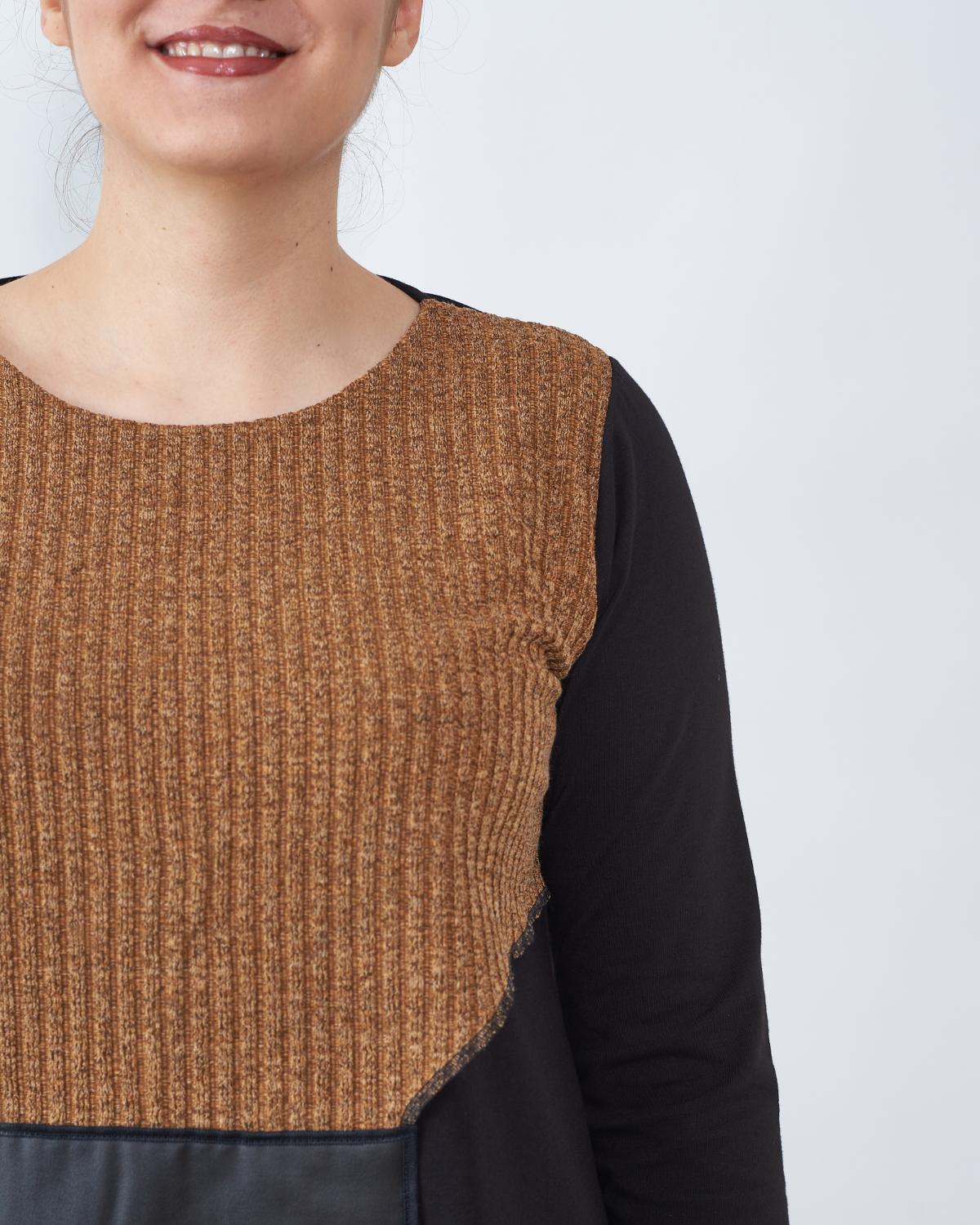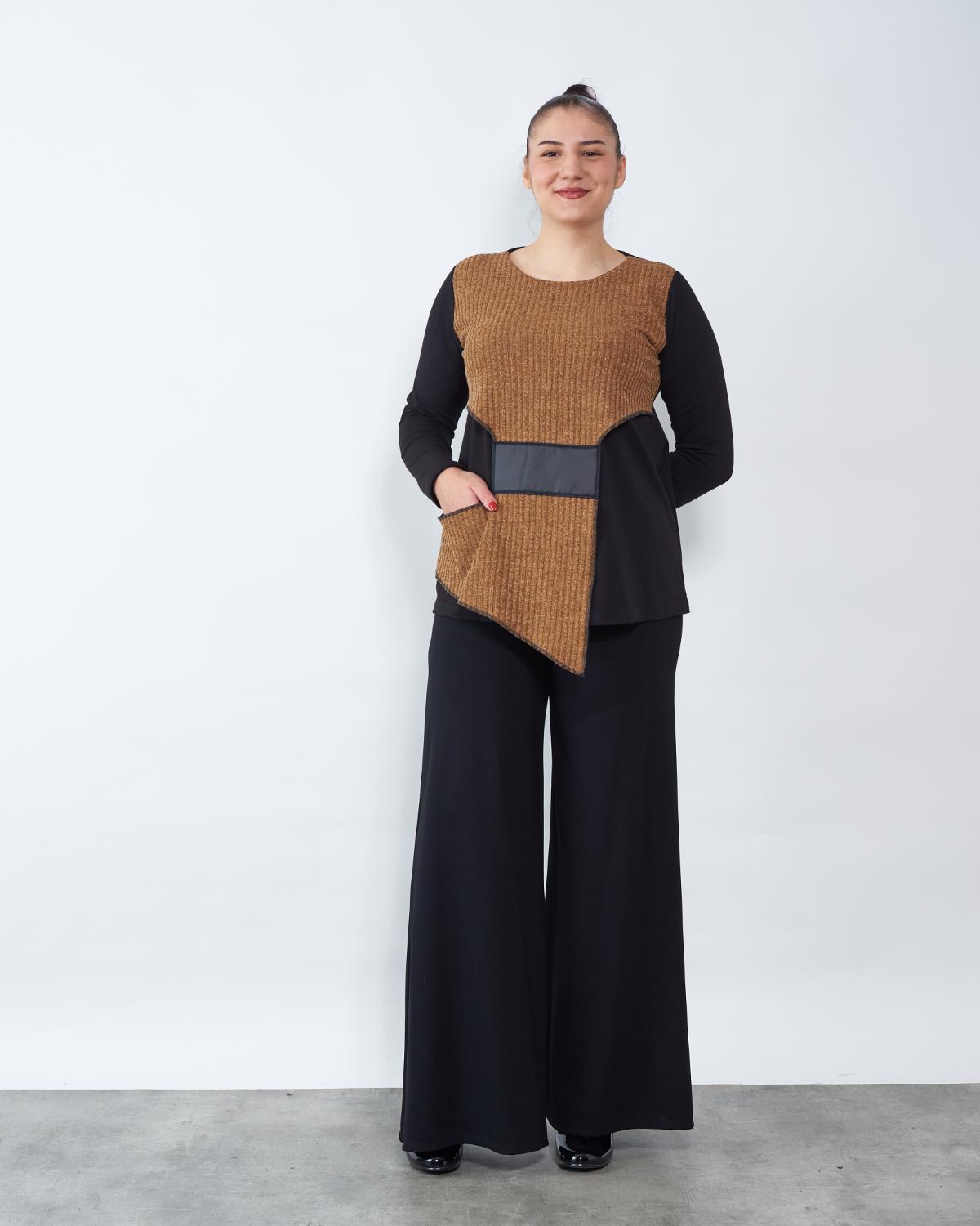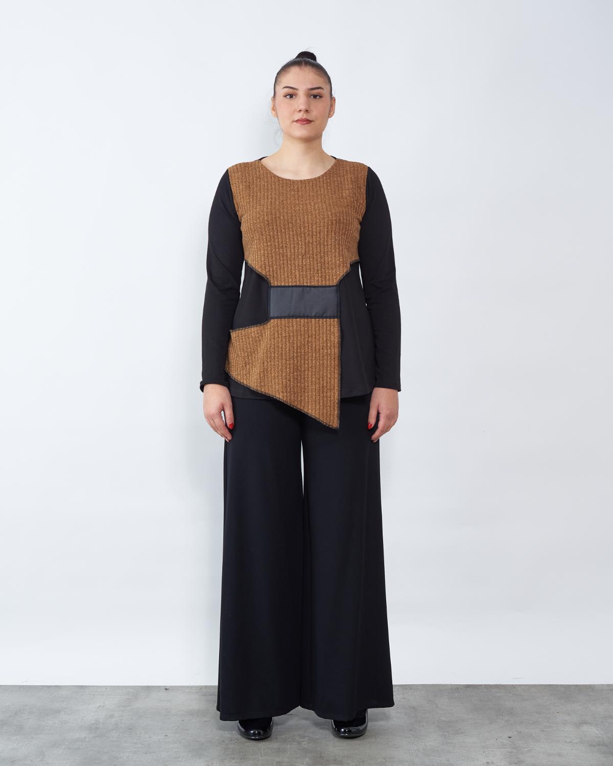 Tunika u prednjem dijelu ima dodatak od eko kože koji vizualno sakriva nedostatke u području struka.